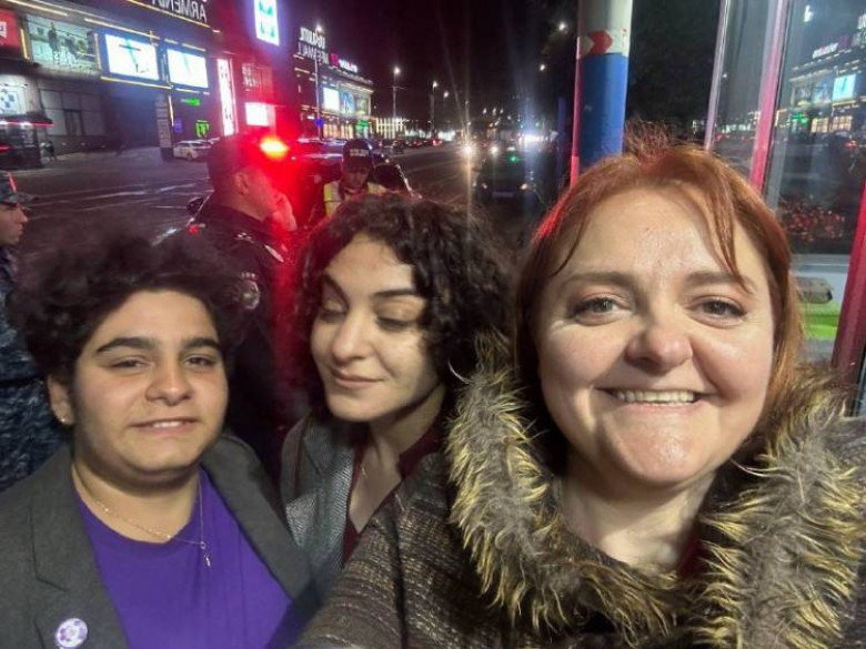 Ժամեր շարունակ աղջիկներին պահել են ոստիկանությունում, մինչ փորձել են քրեական գործ կարել։ Ավելի ուշ Ներքին գործերի նախարարությունից հայտարարել են, թե վարչական իրավախախտում կատարելու մեղադրանքով 3 անձ տեղափոխվել է համայնքային ոստիկանության Նոր Նորքի բաժին։ Նրանց նկատմամբ կազմվում են վարչական իրավախախտման վերաբերյալ արձանագրություններ։ Ավելի ուշ աղջիկներին ազատ են արձակել, նրանց մոտից բռնագրավելով սոսինձն ու պաստառները։