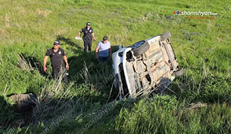 «Toyota»-ն դուրս է եկել հանդիպակաց գոտի, բախվել քարերին և կողաշրջված հայտնվել դաշտում