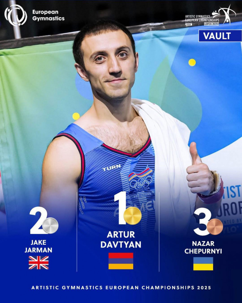 Հայաստանի սպորտային մարմնամարզության հավաքականի առաջատար, Օլիմպիական խաղերի արծաթե և բրոնզե մեդալակիր, աշխարհի չեմպիոն Արթուր Դավթյանը կարիերայում երրորդ անգամ հռչակվել է նաև Եվրոպայի չեմպիոն: