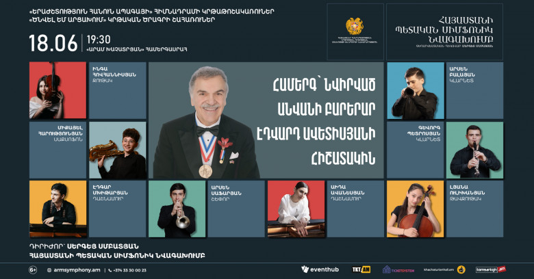 ՄՇԱԿՈՒՅԹՀունիսի 18-ին Արամ Խաչատրյան համերգասրահում տեղի կունենա անվանի բարերար Էդվարդ Ավետիսյանի հիշատակին նվիրված համերգ։ Երեկոյի ընթացքում Հայաստանի պետական սիմֆոնիկ նվագախմբի հետ ելույթ կունենան «Երաժշտություն հանուն ապագայի» հիմնադրամի կրթաթոշակառուները և «Ծնվել եմ Արցախում» կրթական ծրագրի շաhառուները։