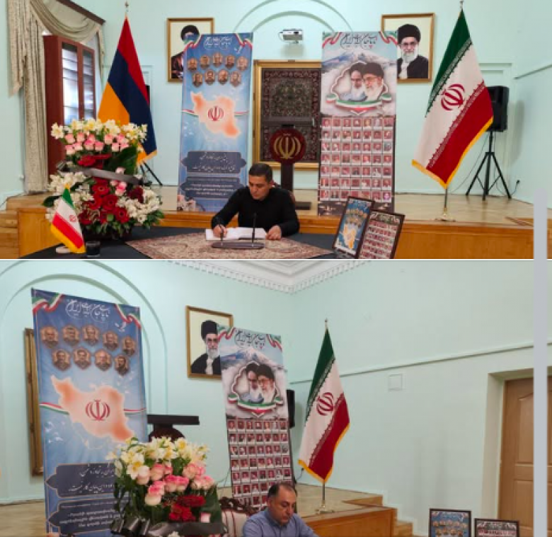 Մենուա Սողոմոնյանը և Ատոմ Մխիթարյանն այցելել են Երևանում Իրանի Իսլամական Հանրապետության դեսպանություն և գրառումներ կատարել վերջին պատերազմի զոհերի հիշատակին բացված սգո մատյանում