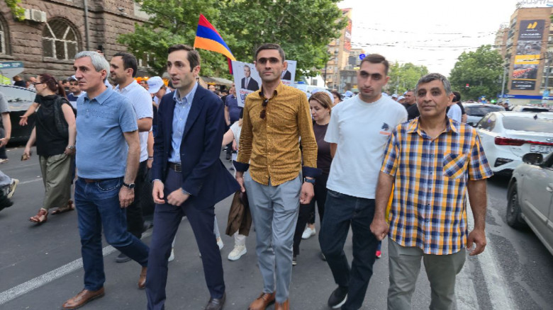 ՔԱՂԱՔԱԿԱՆԼուսավոր Հայաստան կուսակցության փոխնախագահ Դավիթ Խաժակյանը թիմակիցների հետ մասնակցում է Սամվել Կարապետյանի պաշտպանության երթին։