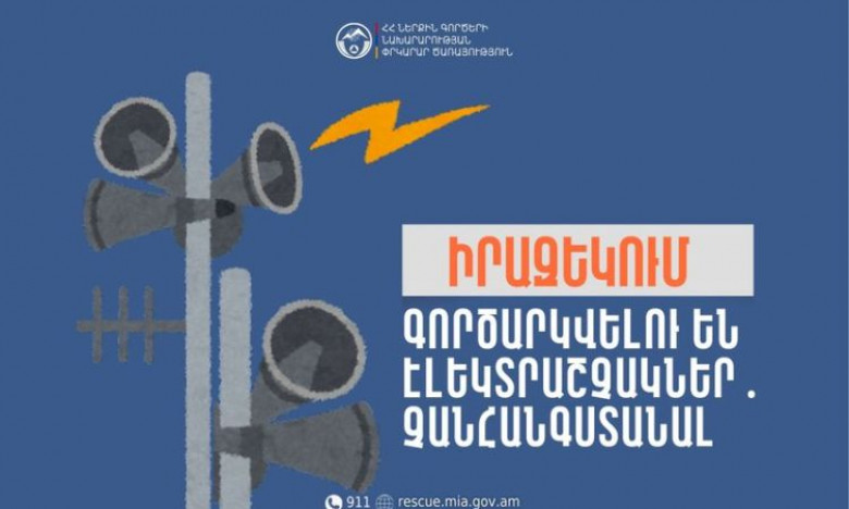 Հուլիսի 28-ին՝ ժամը 10:30-ից մինչև 14:30-ն ընկած ժամանակահատվածում, Երևանի Շենգավիթ վարչական շրջանի Արցախի 4-րդ նրբանցքի, Բագրատունյաց, Արշակունյաց պողոտաների, Շիրակի, Շևչենկոյի փողոցների մի շարք հասցեներում գործարկվելու են էլեկտրական շչակներ։