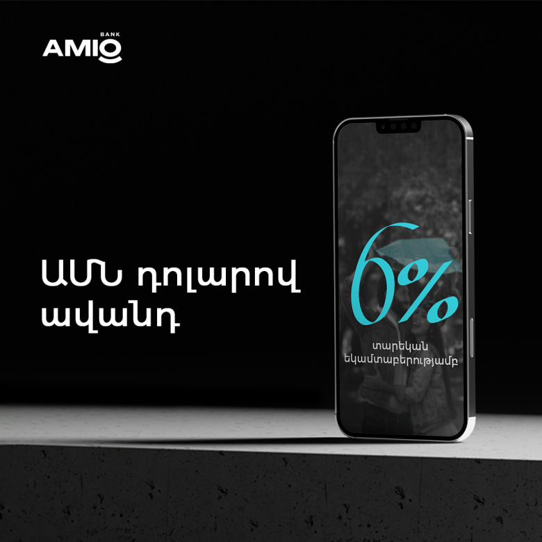 AMIO Mobile հավելվածում մինչև 2025 թվականի օգոստոսի 31-ը կգործի հատուկ առաջարկ՝ 6% տարեկան եկամտաբերություն՝ ԱՄՆ դոլարով ավանդի համար (366-1095 օր ժամկետով)։
