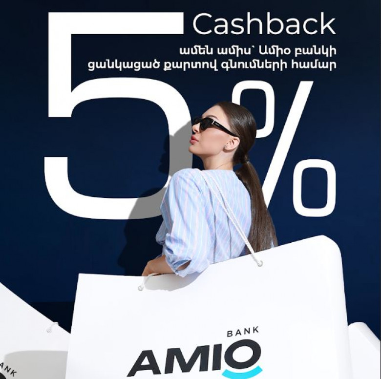 Հուլիսի 1-ից Ամիօն մեկնարկել է ակցիա, որի շրջանակում բանկի նոր քարտապանները կստանան 5 % քեշբեք՝ իրենց քարտերով կատարած գնումների համար։
