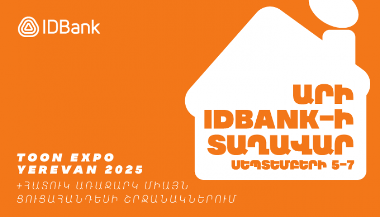 ՀԱՍԱՐԱԿՈՒԹՅՈՒՆIDBank-ը սեպտեմբերի 5-7-ը կմասնակցի TOON EXPO YEREVAN 2025-ին՝ անշարժ գույքի և կառուցապատման ոլորտի միջազգային ամենամեծ և մասշտաբային ցուցահանդեսին տարածաշրջանում։