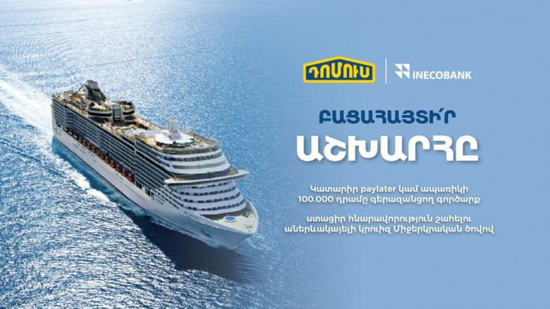 ՀԱՍԱՐԱԿՈՒԹՅՈՒՆԱնմոռանալի ճամփորդություն Միջերկրական ծովով, լիարժեք հանգիստ այն էլ նվերի տեսքով։ Այո՛, ձեր այս երազանքը կարող է իրականություն դառնալ Դոմուսի և Ինեկոբանկի օգնությամբ։ Խաղարկության մասնակիցները հնարավորություն ունեն շահելու Միջերկրական ծովով կրուիզ 1 անձի համար։