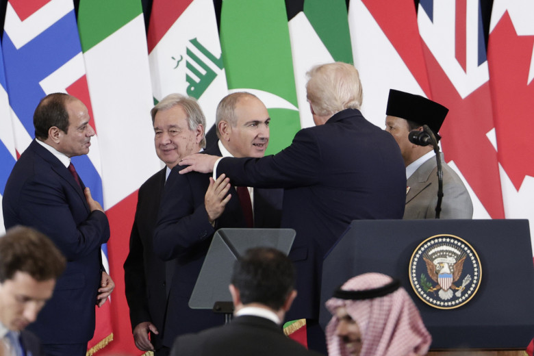 Ցավոք, Փաշինյանը Մերձավոր Արևելքի խաղաղության գագաթաժողով գնաց ոչ թե պրոֆեսիոնալ դիվանագետների փորձը ուսումնասիրելու համար։ Նրա նպատակը ուրիշ էր՝ մոտենալ Թրամփին, որ հետո Հայաստանում իշխանամետ մեդիան աղմկի նրանց «հատուկ» հարաբերությունների մասին։ Եվ հասավ իր նպատակին՝ մոտեցավ, բռնեց Թրամփի ձեռքը, երկար ու համառորեն սեղմեց։ Մինչ միջոցառման ավարտը նորից «բռնացրեց» նրան՝ այս անգամ որոշելով ներկայանալ․ «Պարոն նախագահ, ես Հայաստանի վարչապետն եմ։ Շնորհակալ եմ Ձեզ, Աստված օրհնի Ձեզ»։ Հավանաբար, այդ պահին աշխարհի բոլոր հայերը, անկախ նրանից՝ քվեարկել էին ՔՊ-ի օգտին, թե ոչ, ամոթից գետինը մտան։ Ինչպես մեկնաբանեց մեկը, Շարմ էլ Շեյխում Փաշինյանի վարքագիծը «աննկարագրելի, բյուրեղյա, տիեզերական ինքնանվաստացման ակտ էր»։