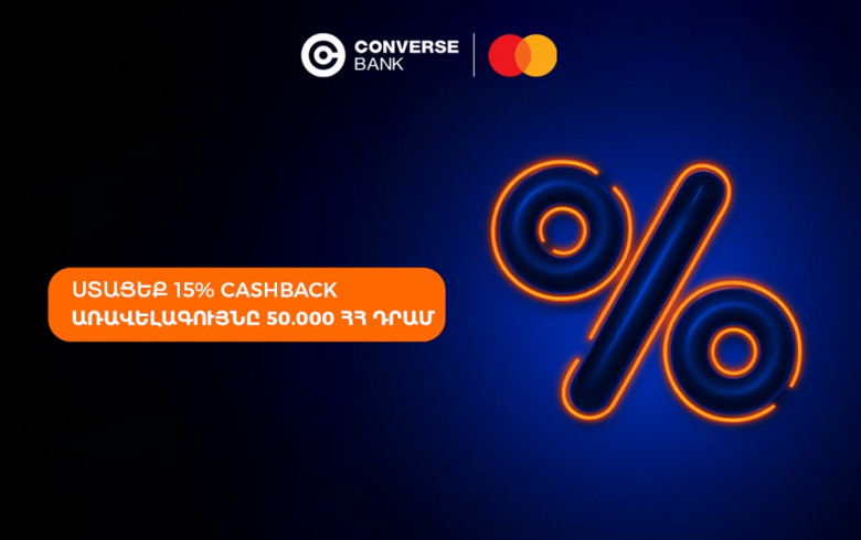 - Գործարքի գումարի 15%-ի՝ մինչև 50․000 ՀՀ դրամի/համարժեք արտարժույթի չափով քեշբեք Կոնվերս Բանկի կողմից,