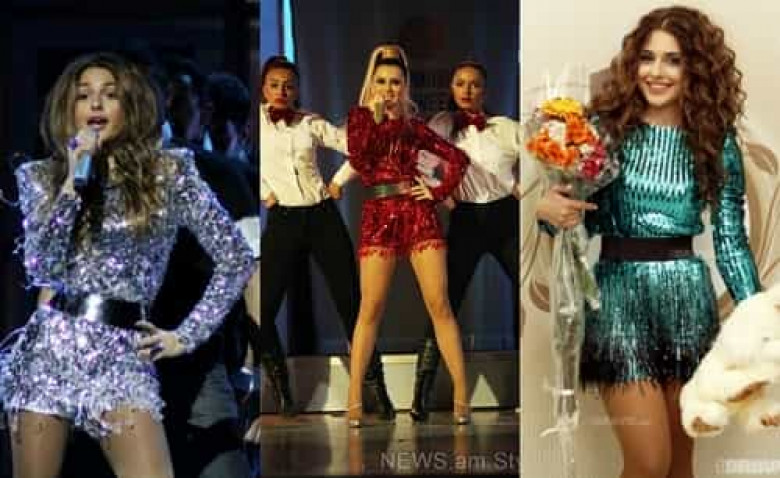 «Իմ ցանկությամբ Անահիտ Սիմոնյանի ատելյեում կարվել է կարմիր փայլուն զգեստ, որի ձեւվածքը որոշելիս որեւէ երգչուհու հանդերձանք չենք ուսումնասիրել: Եթե խոսքը փայլուն կտորի մասին է, ապա այն շատերն են նախընտրում: Այսպիսի զգեստ բոլոր երգիչներն էլ բեմում կրում են եւ կրել են, նույնիսկ` մայրս»: Հարցազրույցներից մեկի ժամանակ նշել է երգչուհին: