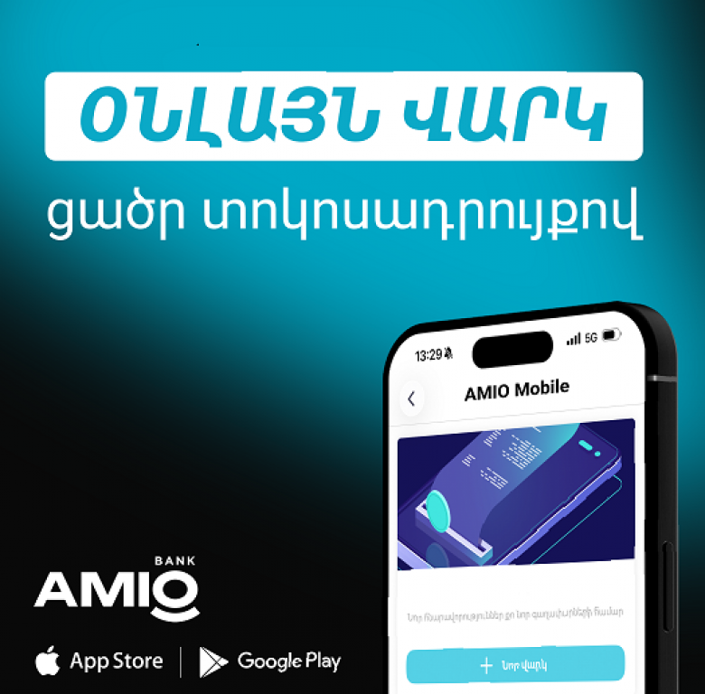 ՀԱՍԱՐԱԿՈՒԹՅՈՒՆAMIO Mobile հավելվածի միջոցով այժմ կարող եք ստանալ օնլայն վարկ՝ առանց բանկ այցելելու։
