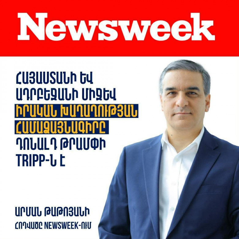 Հեղինակավոր ամերիկյան Newsweek ամսագրում հրապարակվել է քաղաքական և հասարակական գործիչ, «Միասնության թևեր» քաղաքական նախաձեռնության ղեկավար Արման Թաթոյանի հոդվածը, որը Հայաստանի և Ադրբեջանի միջև խաղաղության գործընթացում Թրամփի «Խաղաղության և բարգավաճման միջազգային ուղի» (TRIPP) դերի մասին է։