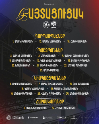 Հայտնի է Հայաստանի հավաքականի վերջնական հայտացուցակը Բելառուսի դեմ խաղում