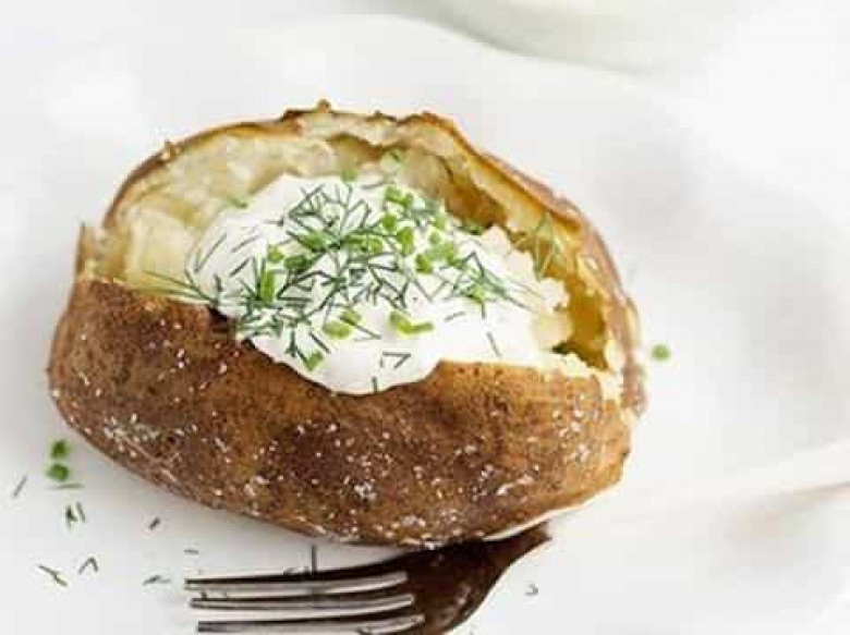 - Ապա ջեռոցից հանում ենք եփած կարտոֆիլը կտրում մեջտեղից ու վրան լցնում պատրաստի սոուսը: Եվ վերջ ամեն բան պատրաստ է: