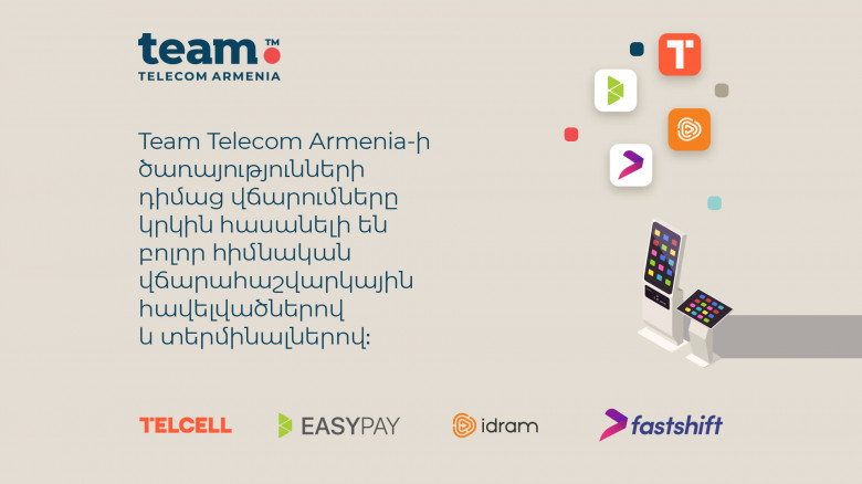 Team Telecom Armenia-ն («Տելեկոմ Արմենիա» ԲԲԸ) տեղեկացնում է, որ վերսկսել է համագործակցությունը Telcell, EasyPay, Idram և Fast Shift ընկերությունների հետ: