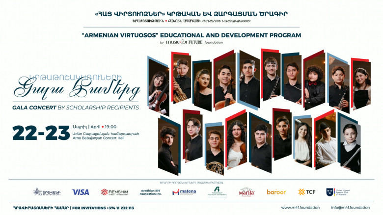 ՄՇԱԿՈՒՅԹԴասական երաժշտության սիրահարները ապրիլի 22-ին և 23-ին՝ ժամը 19։00-ին, Առնո Բաբաջանյան համերգասրահում կարող են ներկա գտնվել «Երաժշտություն հանուն ապագայի» հիմնադրամի «Հայ վիրտուոզներ» կրթական և զարգացման ծրագրի կրթաթոշակառուների ավարտական գալա համերգին։