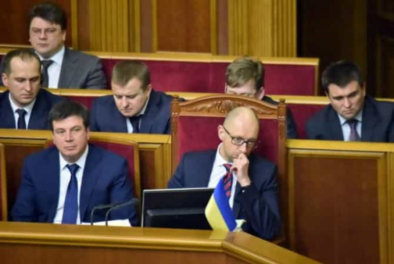Նախարարների կաբինետին անվստահություն հայտնելու բանաձեւը ներկայացրել Էր «Պյոտր Պորոշենկոյնի դաշինք» նախագահական խմբակցության առաջնորդ Յուրի Լուցենկոն: Մինչ այդ Ուկրաինայի խորհրդարանը կառավարության աշխատանքը գնահատել Էր անբավարար՝ նախարարների կաբինետի աշխատանքի մասին հաշվետվությունից հետո, որը ներկայացրել Էր Յացենյուկը: