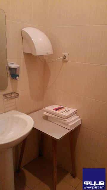 ՔԱՂԱՔԱԿԱՆPast.am-ի տեսախցիկը ֆիքսել է, թե ինչպես են Ազգային Ժողովի նոր մասնաշենքի 2-րդ հարկի զուգարանում գտնվող սեղանիկի վրա՝ լվացարանի կողքին, դրված ՀՀ պաշտոնական տեղեկագրեր, 2015-ի և 2016-ի գերատեսչական նորմատիվ ակտերի տեղեկագրեր և այլ զեկուցագրեր: