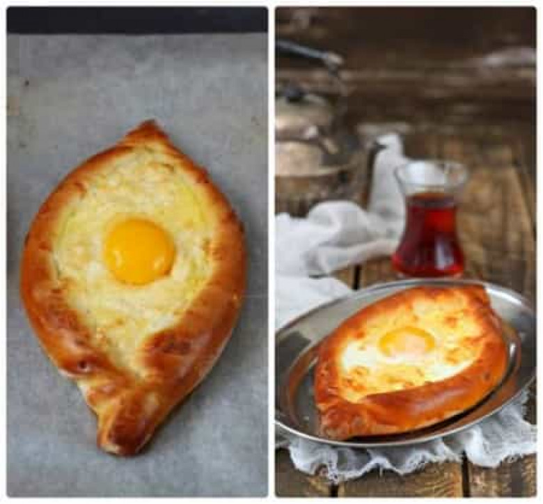 Ստացված ՛՛նավակի՛՛ մեջ լցնել պանրի 1/5-րդ մասը և տեղափոխել ջեռոց եփվելու 10րոպե 200աստիճանում մինչև խմորի ոսկեգույն դառնալը: Այնուհետև հանել խաչապուրին ջեռոցից, դանակով փոս անել պանիրի մեջտեղում, վրան կոտրել 1 հատ ձու և տեղափոխել ջեռոց ևս 5րոպեով: