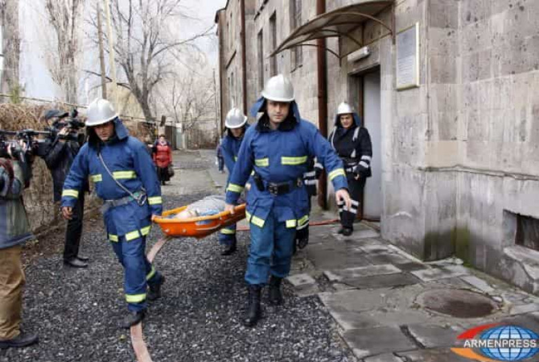 «Պատմամշակութային արգելոց-թանգարանների և պատմական միջավայրի պահպանության ծառայություն» ՊՈԱԿ-ում «հրդեհն» ու հարակից սենյակից դուրս եկող ծուխն առաջինը զգաց տնօրենի օգնականը: Կազմակերպության ՔՊ շտաբն անմիջապես կազմակերպեց նախ մարդկանց, ապա մշակութային արժեքների տարահանում: ՔՊ շտաբի պետն ահազանգեց 911 ծառայություն`օգնության խնդրանքով: Կազմավորումները, ծխապատ գոտուց դուրս բերեցին խուճապից ձեռքի վնասվածք ստացած տուժածին: Առաջին օգնության կազմավորումը ցուցաբերեց առաջին օգնություն: Կազմավորումները նաև 3 արկղ մշակութային րժեք են դուրս բերել: