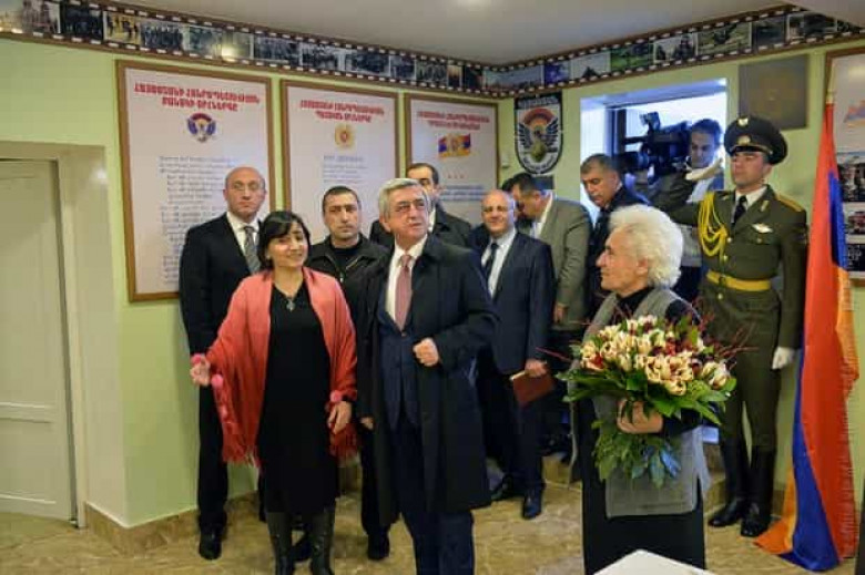 Հանրապետության նախագահն ազատամարտիկի հարազատների եւ ՀՀ պաշտպանության նախարարության ներկայացուցիչների ուղեկցությամբ այցելել է ռազմահայրենասիրական դաստիարակության սենյակ, գրադարան, տուն-թանգարանի այն սենյակները, որտեղ իր կյանքի 26 տարիներն է անցկացրել ազատամարտիկը: