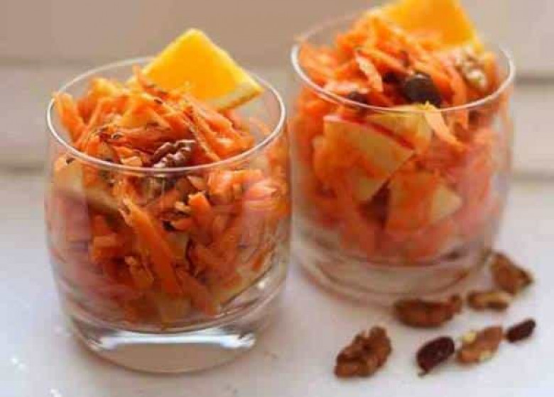 Մեկ գազարը քերեք Ավելացրեք կտրտած ծիրանաչիր Կտրատած նարինջ 1 թեյի գդալ մեղր Խառնեք բաղադրիչները, թողեք 10 րոպե՝ համերը խառնվեն, ապա կերեք ամեն առավոտ։