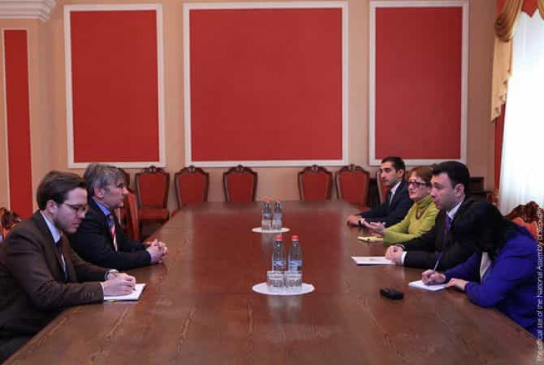 ՄԻՋԱԶԳԱՅԻՆՀՀ ԱԺ փոխնախագահ Էդուարդ Շարմազանովը մարտի 18-ին ընդունել է Կոնրադ Ադենաուեր հիմնադրամի Հարավային Կովկասի տարածաշրջանային գրասենյակի ղեկավար Թոhմաս Շրափելին եւ հիմնադրամի տարածաշրջանային ղեկավարի գիտաշխատող Ֆլորիան Ֆեյերաբենդին: Ինչպես տեղեկացրին ՀՀ ԱԺ հասարակայնության և տեղեկատվության միջոցների հետ կապերի վարչությունից, ողջունելով հյուրերին՝ Էդուարդ Շարմազանովն արժեւորել է Կոնրադ Ադենաուեր հիմնադրամի գործունեությունը Հայաստանում եւ նշել, որ այն հատկապես կարեւոր է ժողովրդավարության զարգացման տեսանկյունից, եւ Հայաստանը շահագրգիռ է խորացնելու նրա հետ կապերը: