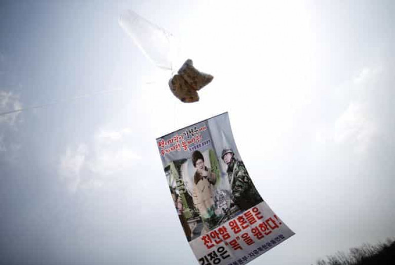Ակտիվիստները գազով լի օդապարիկներին ամրացրել են շուրջ 100 հազար թռուցիկներ, որոնացում, մասնավորապես, քննադատում են մեծ քանակությամբ հյուսիսկորեական ռազմական տեխնիկայի տեղաբաշխումը երկու պետությունների միջեւ ընկած ապառազմականացված գոտու երկայնքով: