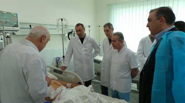 Ըստ նախարարության՝ այսօր առավոտյան Հանրապետական բժշկական կենտրոն է ընդունվել 1973 թ-ի ծնված Արթուր Արզանգուլյանը` վերին ձախ վերջույթի բազմաբեկորային կույր վնասվածքով, ձախակողմյան տրավմատիկ հեմոպնևմոթորաքսով, մետաղյա բեկոր վերել աորտայի առաջնային պատի վրա: Կատարվել է պլևրալ խոռոչի դրենավորում, վերին վերջույթների կույր վիրավորումների մշակում: