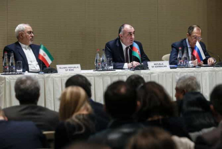ՄԻՋԱԶԳԱՅԻՆԲաքվում ՌԴ, Իրանի և Ադրբեջանի արտաքին գործերի նախարարներ Սերգեյ Լավրովի, Ջավադ Զարիֆ և Էլմար Մամեդյարովի ապրիլի 7-ին կայացած եռակողմ մամուլի ասուլիսի ժամանակ Լավրովը և Մամեդյարովը պատասխանել են լրագրողի հարցին, թե ինչպես կմեկնաբանեն ղարաբաղյան հակամարտության գոտում էսկալացիան։