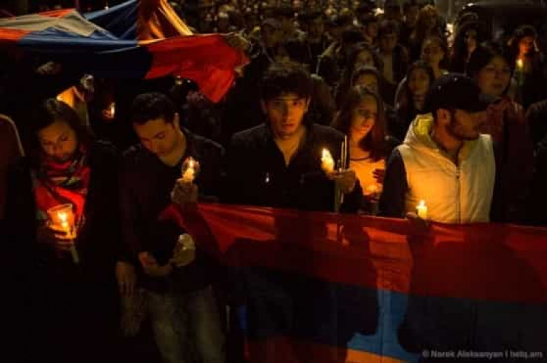 Ստ. Շահումյանի հրապարակից մեկնարկած երթը բազմամարդ էր. հազարավոր մարդիկ՝ երիտասարդներ, տարեցներ, կանայք և անգամ երեխաներ լուռ քայլեցին մոտ 6 կմ՝ դեպի Եռաբլուր պանթեոն:
