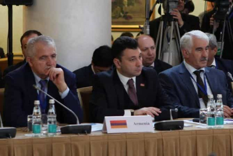 ՄԻՋԱԶԳԱՅԻՆԱշխատանքային այցով Ռուսաստանի Դաշնությունում գտնվող ՀՀ ԱԺ փոխնախագահ Էդուարդ Շարմազանովն ապրիլի 19-ին Մոսկվայում մասնակցել է «Միջխորհրդարանական համագործակցությունն ի շահ 21-րդ դարում Եվրասիական տարածաշրջանի երկրների համատեղ բարեկեցության» խորագիրը կրող Եվրասիայի երկրների խորհրդարանների ղեկավարների առաջին համաժողովին: Ինչպես «Արմենպրես»-ին տեղեկացրին ՀՀ ԱԺ փոխնախագահ Էդուարդ Շարմազանովի աշխատակազմից, ԱԺ փոխնախագահը հանդես է եկել ելույթով՝ մասնավորապես նշելով.