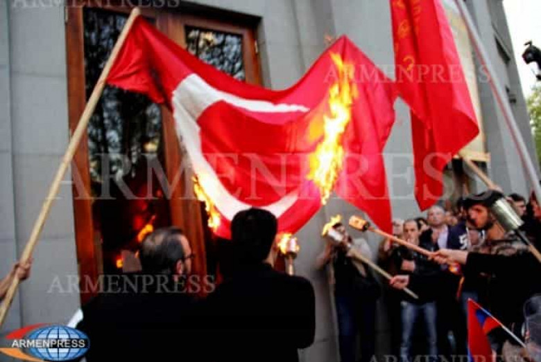 Ջահերով երթի մասնակիցներն այրեցին Թուրքիայի և Ադրբեջանի դրոշները