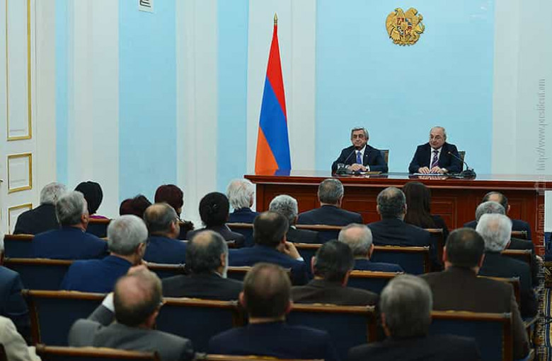 Նախագահ Սերժ Սարգսյանն այսօր հանդիպում է ունեցել Հանրային խորհրդի անդամների հետ: Հանրապետության Նախագահը պատասխանել է խորհրդի անդամներին հետաքրքրող բազմաբնույթ հարցերին, լսել նրանց առաջարկություններն ու կարծիքները հասարակությանն այսօր հետաքրքրող և մտահոգող մի շարք հարցերի վերաբերյալ, ներկայացրել իր մոտեցումները: ՀՀ Նախագահին ուղղված հարցերը վերաբերել են ինչպես ս.թ. ապրիլի սկզբին Լեռնային Ղարաբաղի հակամարտության շփման գծում տեղի ունեցած իրադարձություններին, այդ օրերին հայկական բանակի գործողություններին, Հայաստան-Արցախ-Սփյուռք համախմբվածությանը, այնպես էլ ՀՀ արտաքին և ներքին քաղաքականությանը, ԼՂ հիմնախնդրի բանակցային գործընթացի հեռանկարին, համահայկական ներուժի համախմբմանը: