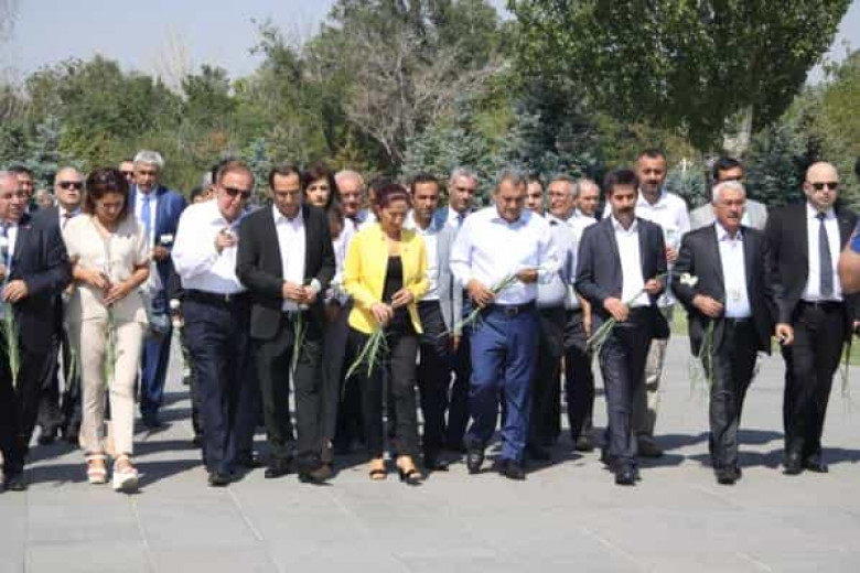 ՀԱՍԱՐԱԿՈՒԹՅՈՒՆԱյսօր' օգոստոսի 3-ին, Համահայկական ամառային 6-րդ խաղերի բացման արարողությանը մասնակցելու նպատակով Թուրքիայից Հայաստան ժամանած պատվավոր հյուրերը Համահայկական խաղերի համաշխարհային կոմիտեի նախագահ Իշխան Զաքարյանի և գործկոմի անդամների ուղեկցությամբ այցելել են Ծիծեռնակաբերդի հուշակոթող և Հայոց ցեղասպանության զոհերի թանգարան-ինստիտուտ: Պատվիրակության կազմում են եղել Վանի քաղաքապետ Բեքիր Քայան, Վանի համաքաղաքապետ Հաթիջե Չոբանը, Բիթլիսի քաղաքապետ Հուսեյին Օլանը, Մուտքի քաղաքապետ Օզքան Բիրլիկը, Նորշենի քաղաքապետ Էմին Օզքանը, Դիարբեքիրի Սուրի քաղաքապետ Ֆաթմա Շըք Բարութը և այլ բարձրաստիճան անձիք: