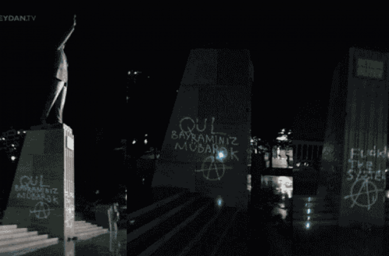 Facebook-ում հայտնվել էր Ադրբեջանի կենտրոնական բանկի դիմացի այգում Հեյդար Ալիեւի արձանի լուսանկարը, որի պատվանդանի երկու կողմերին սպիտակ ներկով ադրբեջաներենով եւ անգլերենով գրվել է` Qul Bayramınız MՖbarək (Շնորհավորում ենք ստրուկի օրվա առթիվ): Պատվանդանի առաջնակողմում գրվել է Fuck the system (Կորչի համակարգը):