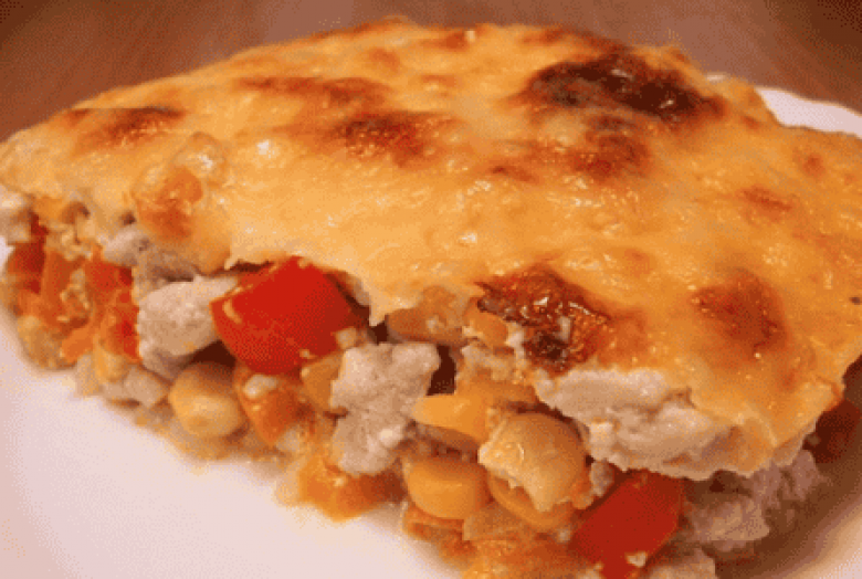 Լցնել միսը և եգիպտացորենը՝ կրկին թթվասեր։