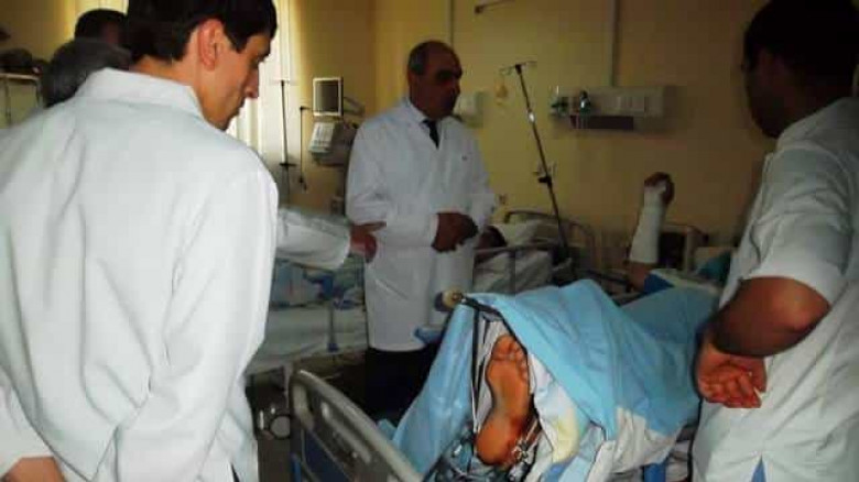 Նշենք, որ բժշկական կենտրոնը ողջ գիշեր աշխատել է արտակարգ ռեժիմով: Երիտասարդ և փորձառու բժիշկների համատեղ ջանքերով կազմակերպվել է տուժածների առաջին բուժօգնությունը` պահանջվող ախտորոշիչ ու վիրաբուժական մեթոդներով: Հիվանդներից մեկն ունեցել է զույգ ազդրերի վզիկների կոտրվածքներ՝ տեղաշարժով, աջ սրունքի թաթային հոդի բաց հոդախախտի կոտրվածք, տրավմատիկ շոկ՝ ծանր աստիճանի: Կատարվել են հակաշոկային միջամտություններ և վիրահատություններ՝ վերքի առաջնային վիրաբուժական մշակում, զննում, ոսկրաբեկորների և ոսկրիկների համադրում, ուղղում, ֆիքսու մ և թաթի ռևասկուլյարիզացիա (անոթների վերականգնում):