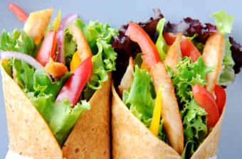Կտրատեք բանջարեղենը: Լավաշը փռեք սեղանին, վրան սոուս քսեք և դրեք բանջարեղենը, դրեք նաև հավի կրծքամիսը: Զգուշորեն փաթաթեք լավաշը խողովակաձև և դրեք ստվարաթղթով պատված գրիլի թավայի մեջ: