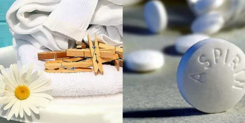 Ասպիրինի 5 հաբ լուծեք 8լ ջրի մեջ և սպիտակ հագուստները թողեք այդ ջրում 8 ժամ, արդյունքում հագուստները ձյունաճերմակ կդառանան: Կարելի է հաբերը բաժանել մանր կտորների, որպեսզի ավելի լավ արդյունք ստացվի: