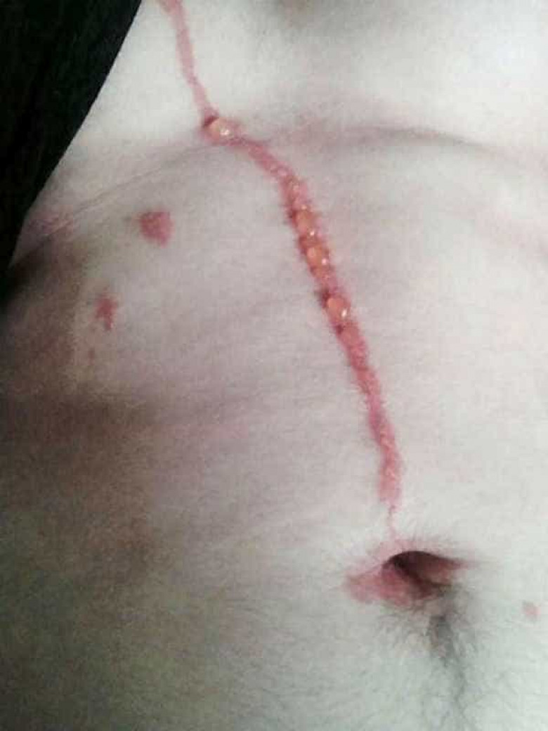 Ավելին, արդեն իսկ հաջորդ օրը այդ հատվածում ի հայտ են եկել նաև հեղուկով լցված փոքրիկ պարկեր, որոնց գոյությունը ավելի է անհանգստացրել 21 ամյա ավստարլիացի երիտասարդին: