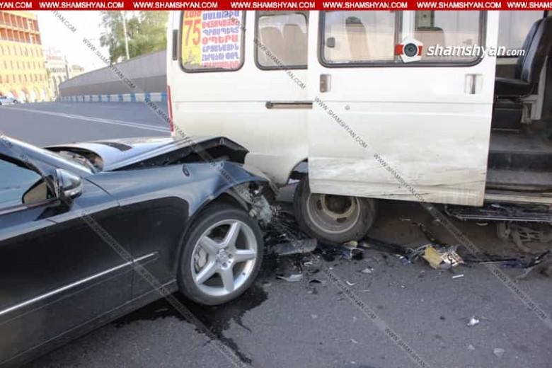 Երևանում բախվել են Mercedes-ը և 75 համարի երթուղայինը. կա վիրավոր. (լուսանկարներ)