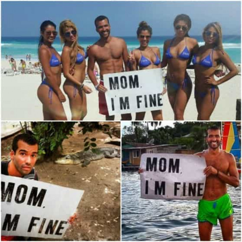 Այժմ հոգատար որդին իր մայրիկին է ուղարկում ողջույններ յուրաքանչյուր երկրից, որտեղ այցելում է և լուսանկարվում «Mom I'm fine»` «Մայրիկ ինձ հետ ամեն ինչ կարգին է» ուղերձով: