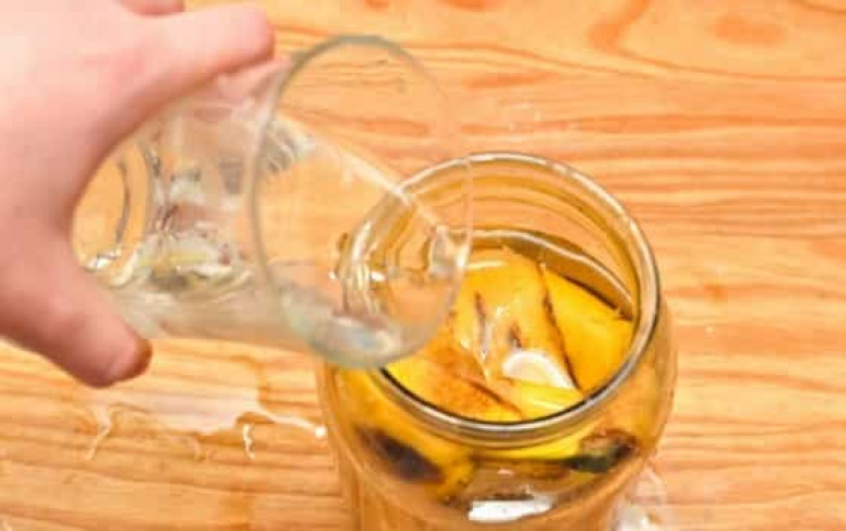 3. Սակայն բանանի կեղևը ավելի էժան և հասանելի միջոց է, քան բանանի միջուկը։ Կեղևի վրա ջուր լցրեք և թողեք այդպես մեկ օր։