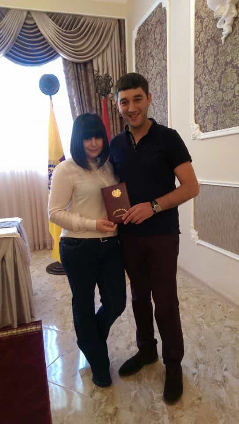 «Առանձնահատուկ պատճառ չկար, որ այս արարողությունը ձգձգվում էր, ուղղակի ժամանակ չէինք ունենում հայտ ներկայացնելու, քանի որ երկուսս էլ անընդհատ աշխատանքի մեջ էինք: Մի օր որոշեցինք ու դիմեցինք, և այսօր արդեն պաշտոնական ամուսիններ ենք», - մեզ հետ զրույցում նշեց դերասանը: