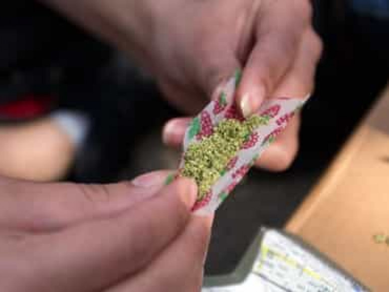 Ոստիկանության մամուլի ծառայությունից NEWS.am-ին հայտնում են, որ խուզարկությամբ նրա գրպանից հայտնաբերվել է կանաչավուն, չորացված եւ մանրացված զանգված: