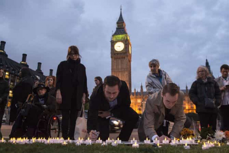 Լոնդոնի բնակիչները ծաղիկներ են տանում Մեծ Բրիտանիայի խորհրդարանի մոտ՝ Ջո Քոքսի հիշատակին