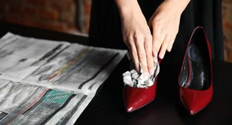 5. Կոշիկների մեջ խոնավ թերթեր դրեք, որքան հնարավոր է շատ: Թողեք մի քանի ժամ կամ ամբողջ գիշեր և հագեք: