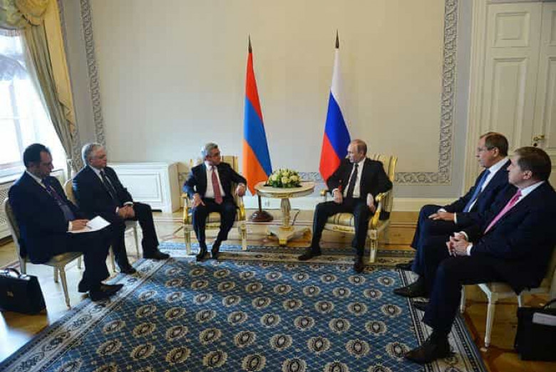 ՔԱՂԱՔԱԿԱՆՍանկտ Պետերբուրգի Կոնստանտինովյան պալատում հունիսի 20-ին կայացել է ՀՀ Նախագահ Սերժ Սարգսյանի և ՌԴ Նախագահ Վլադիմիր Պուտինի հանդիպումը: Ռազմավարական գործընկեր երկու երկրների նախագահները քննարկել են ԼՂ հակամարտության կարգավորման բանակցային գործընթացին վերաբերող հարցեր, այդ համատեքստում անդրադարձել տարածաշրջանի զարգացումներին և անվտանգությանն սպառնացող ներկայիս մարտահրավերներին: Ինչպես «Արմենպրես»-ին տեղեկացրին ՀՀ նախագահի աշխատակազմի հասարակայնության եւ տեղեկատվության միջոցների հետ կապերի վարչությունից, նախագահները մտքեր են փոխանակել Վիեննայում ԵԱՀԿ ՄԽ համանախագահող երկրների արտաքին գործերի նախարարների նախաձեռնությամբ կայացած հանդիպման արդյունքում ձեռք բերված պայմանավորվածությունների կատարման ընթացքի շուրջ: