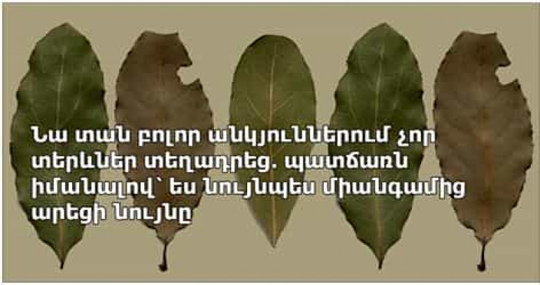 Նա տան բոլոր անկյուններում չոր տերևներ տեղադրեց. պատճառն իմանալով՝ ես նույնպես միանգամից արեցի նույնը
